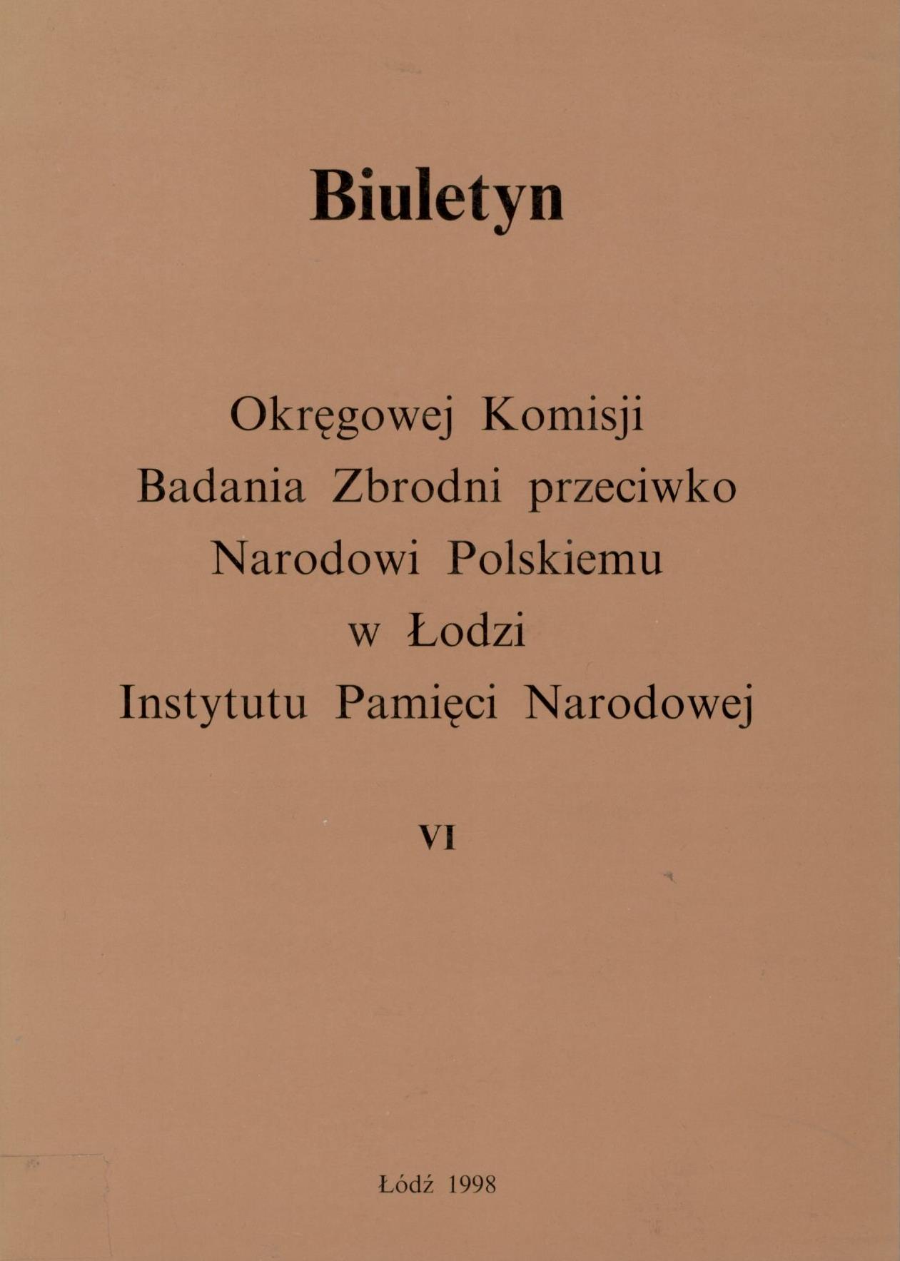 (Biuletyn Okręgowej Komisji Badania Zbrodni Przeciwko Narodowi Polskiemu w Łodzi Instytutu Pamięci Narodowej ISSN 1425-199X ; 1998 z. 6)